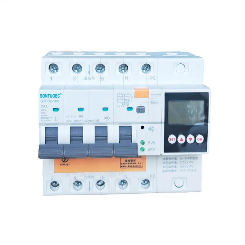 Το STSF2-100 100A 2P 4P πολυλειτουργικό RCBO είναι κατάλληλο για AC 50/60Hz, που ονομάζεται σε κύκλωμα με τάση 230V-400V και ονομαστικό ρεύμα 100Α, όταν το Aperson είναι ηλεκτρικό ή διαρροές ηλεκτρικού ρεύματος. Όταν η διαρροή, η υπέρβαση και η υπο -τύχη φτάνουν στις τιμές, ο υπολειπόμενος διακόπτης του κυκλώματος μπορεί να λειτουργήσει γρήγορα σε πολύ σύντομο χρονικό διάστημα να αποκόψει γρήγορα την τροφοδοσία ρεύματος. Όταν η θερμοκρασία παρακολούθησης του υπολειπόμενου διακόπτη του κυκλώματος ρεύματος φτάσει στην τιμή ρύθμισης, το καλώδιο γείωσης παρακολούθησης δεν είναι συνδεδεμένο. Όταν συνδέεται, το προϊόν εκπέμπει έναν ήχο συναγερμού για την προστασία της ασφάλειας του προσωπικού και του ηλεκτρικού εξοπλισμού και μπορεί να αποφύγει Αποτρέψτε τη ζημιά στον εξοπλισμό που προκαλείται από την υπέρβαση στο ηλεκτρικό δίκτυο. Έχει υπερφόρτωση, βραχυκύκλωμα, διαρροές, υπερτιμήσεις υπερεκμετάλλευσης και λειτουργίες προστασίας overtemperature μπορούν επίσης να χρησιμοποιηθούν για να ενεργοποιηθούν και να απενεργοποιηθούν οι ηλεκτρικές συσκευές υπό κανονικές συνθήκες υπό κανονικές συνθήκες Τα κυκλώματα φωτισμού, ειδικά κατάλληλα για βιομηχανικά και εμπορικά συστήματα διανομής φωτισμού. Το προϊόν έχει μικρό όγκο, συμπαγή δομή και καλύτερη απόδοση κόστους-αποτελεσματικότητας από άλλα παρόμοια προϊόντα. Έχει μια όμορφη εμφάνιση, Η υψηλή χωρητικότητα θραύσης καθιστά μια καλή επιλογή για τη διανομή ενέργειας των νοικοκυριών. Αυτό το προϊόν συμμορφώνεται με τα πρότυπα GB/T 16917.1 και IEC 61009-1 και έχει λάβει πιστοποίηση CE.