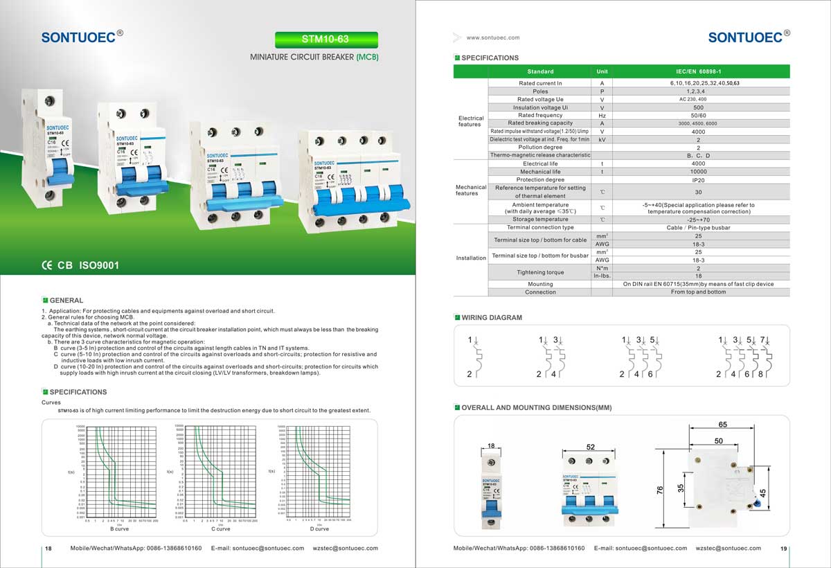 Η SONTUOEC είναι ένας από τους Κινέζους προμηθευτές/κατασκευαστές που ειδικεύεται στην παραγωγή διαφόρων μικρών ηλεκτρικών συσκευών Ο διακόπτης κυκλώματος υψηλής διακοπής STM10-63 της σειράς STM10-63 έχει τα χαρακτηριστικά προηγμένης δομής, αξιόπιστη απόδοση, υψηλή ικανότητα θραύσης, κομψή εμφάνιση και το κέλυφος και τα μέρη του είναι κατασκευασμένα από υλικό με αντοχή στην κρούση, ισχυρό χαρακτηριστικό επιβραδυντικό φλόγας. Είναι κατάλληλο για σύστημα τροφοδοσίας συχνοτήτων 50 ή 60, Ue 400V και κάτω, Ui 63A και κάτω. Συμμορφώνεται με τα πρότυπα IEC60898.1 και GB10963.1