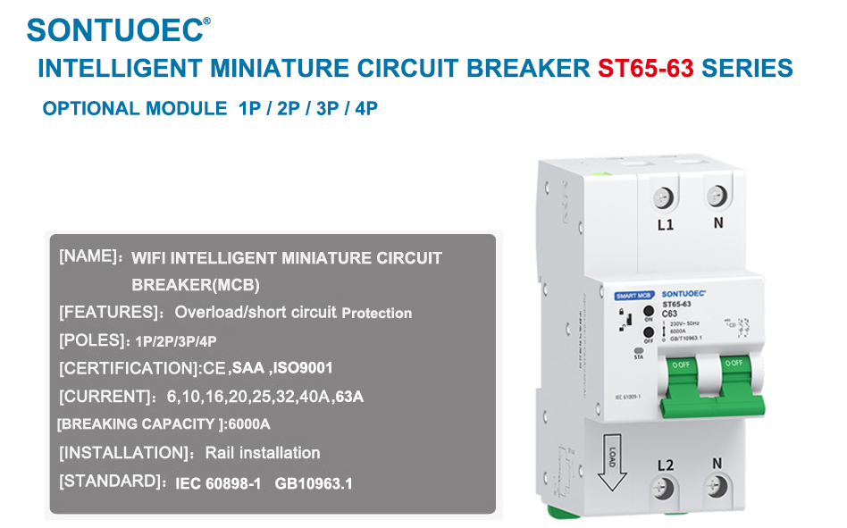Το SontuoEC είναι ένας από τους Κινέζους προμηθευτές/ κατασκευαστές που ειδικεύονται στην παραγωγή διαφόρων μικρών ηλεκτρικών συσκευών ST65-63 είναι ένας πολυλειτουργικός έξυπνος διακόπτης που παράγουμε, που ενσωματώνουμε τις λειτουργίες της μέτρησης της ηλεκτρικής ενέργειας, της υπερφόρτωσης, του βραχυκυκλώματος, της τάσης, της διαρροής, της διαρροής, της απομακρυσμένης λειτουργίας, του απομακρυσμένου ανοίγματος και του κλεισίματος, του χρόνου, του δικτύου και του δικτύου. Το WiFi RS485 πολυλειτουργικό IoT Intelligent MCB RCBO Intelligent Micro Circuit Breaker μπορεί να χρησιμοποιηθεί ευρέως σε έξυπνες θέσεις διαχείρισης ενέργειας, όπως το Commerce, η γεωργία, τα σχολεία, τα νοσοκομεία, τα ξενοδοχεία, οι χώροι ψυχαγωγίας, οι σταθμοί, οι μονάδες προστασίας των πολιτιστικών κειμηλίων, η διαχείριση των Lamb Urban Street και το Concrol και οι άλλοι χώροι. RS485 και άνω ή προς τα κάτω τη συνάρτηση προστασίας τάσης.